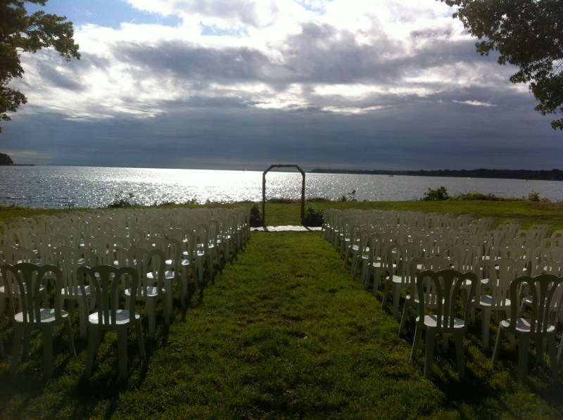 This May wedding was set up for 120 guests. The altar was custom made using local cedar trees and is on blocks for easy relocation.